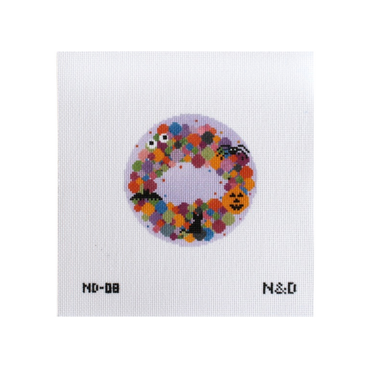 Colorful Spooky Wreath Ornament Needlepoint Canvas